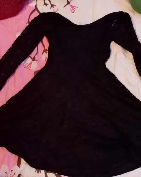 Vestido corto manga larga. Vestido corto color negro de mangas largas, con escote en la parte de la espalda
