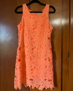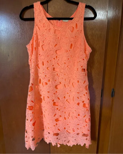 Vestido corto, tejido con fondo. Color naranja, tela algodón y poliéster de solo una puesta