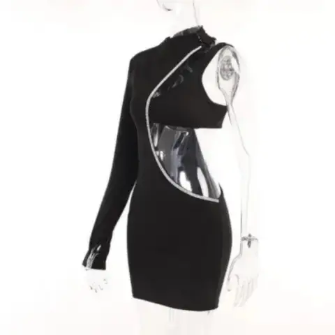 Vestido corto negro. Hermoso vestido negro en una manga con apertura lateral y detalles en cristal en tono plateado