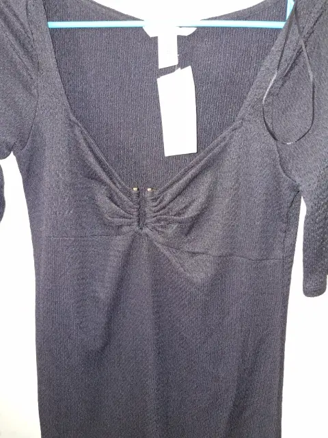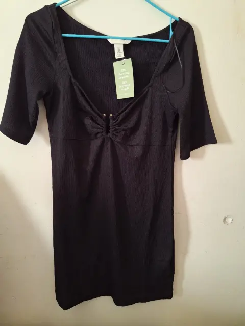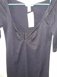 Vestido corto negro. Juvenil vestido semi formal, con escote progundo y argolla en escote, tela acrilica semi formal , corto para ocacion especial