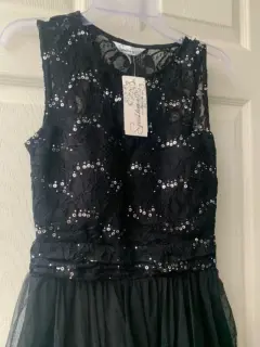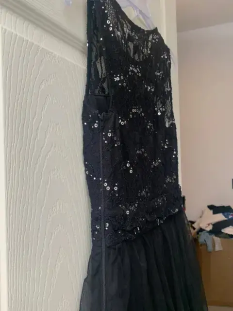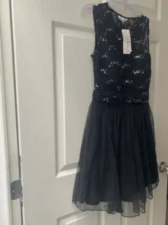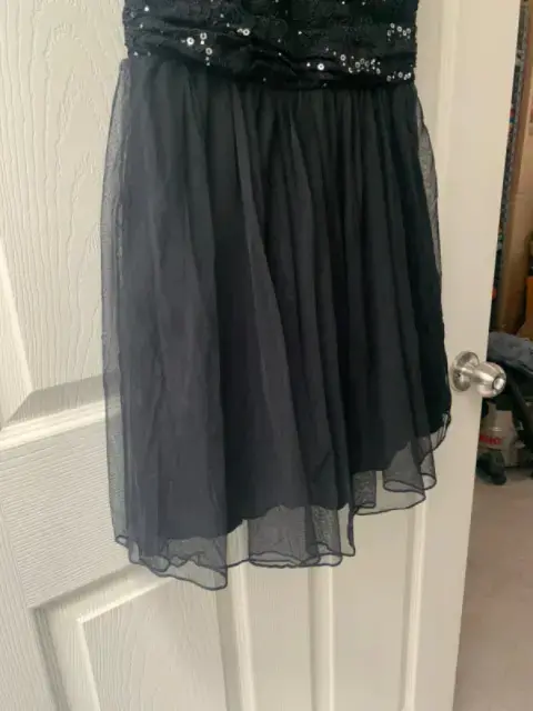 Vestido corto negro con algunos toques de lentejuela. Listo para un cóctel y fiesta. Nuevo con etiqueta. Llega arriba de la rodilla. Con forro. Luce súper bonito. Talla 7