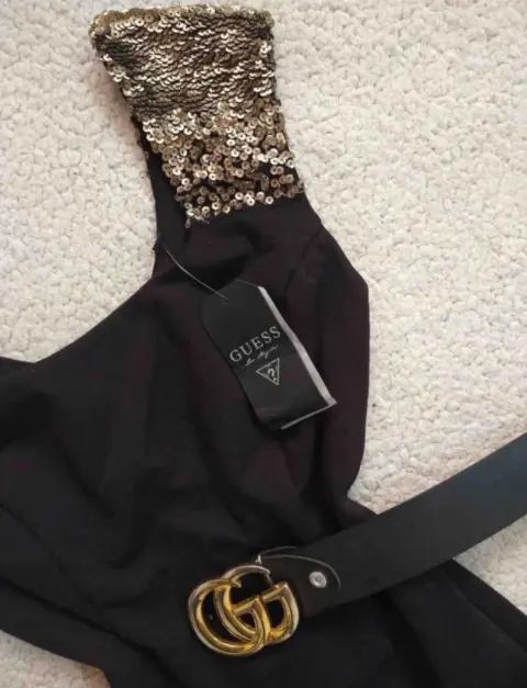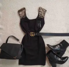 Precioso vestido corto color negro marca Guess , con detalles de lentejuelas cobrizas en los hombros (no incluye el cinto) cierre por la parte de atrás . La tela es gruesa , está muy padre