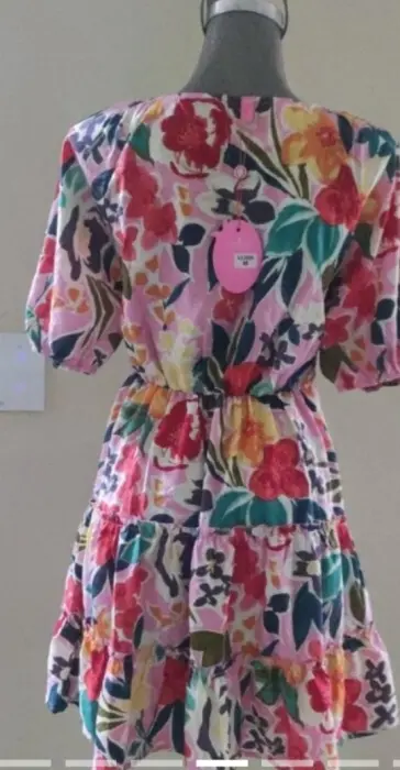Vestido corto para dama vestido de manga de farol escote en v estampado floral talla mediana