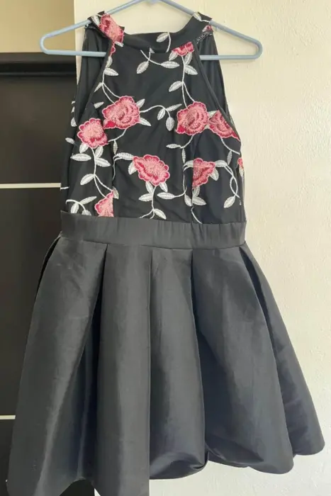 Vestido corto perfecto para evento de noche. Hermoso vestido negro con flores bordadas en el torso, perfecto para fiestas, graduaciones y/o bodas de noche.Únicamente se usó una vez, esta en excelentes condiciones.