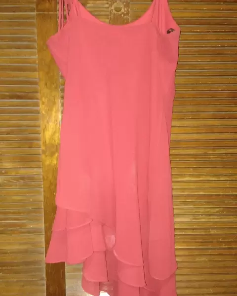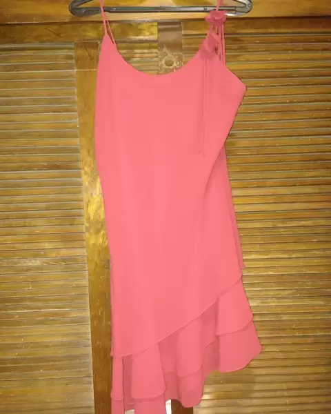 Vestido Rojo con aplicaciones de flores en un tirante del lado izquierdo, corto.Es talla 11, se encuentra en perfecto estado