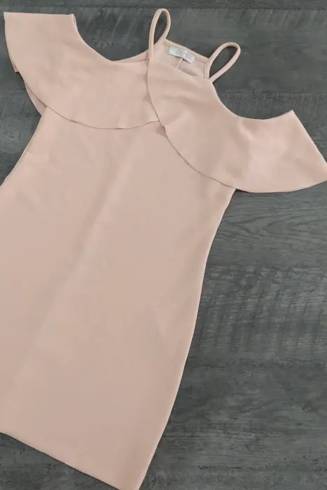 Vestido corto rosa palo, no transparenta y estira un poco.Medidas: Pecho (de axila a axila) 88 cm,Cintura 84 cm, Cadera 100 cm aprox, Largo 90 cmSi te interesan varias prendas de mi closet puedo armarte un paquete según tus preferencias 💖