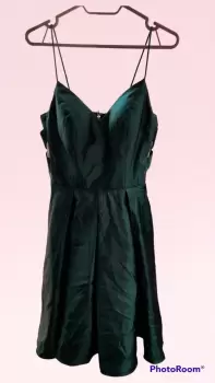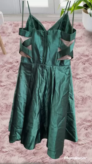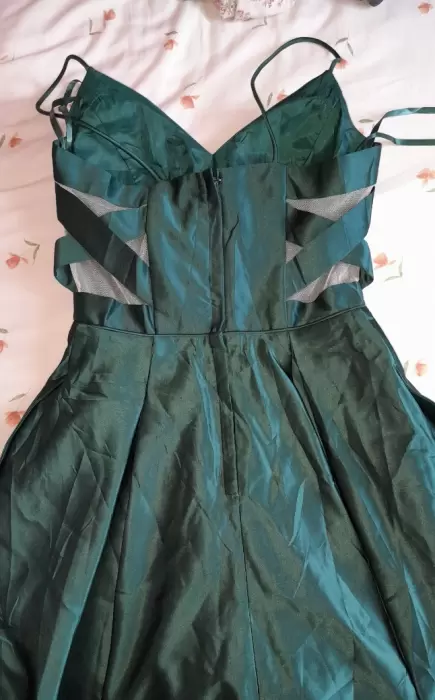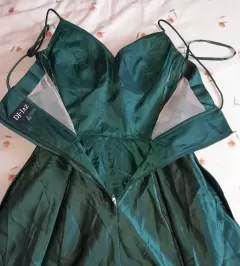 Hermoso vestido verde metalico hermoso color cuenta con tela de fondo para dar volumen es talla 0 en perfecto estado
