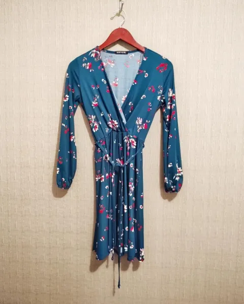 Vestido cruzado. Vestido floreado diseño cruzado, pero no se abre. tiene cintas decorativas atrás