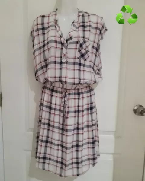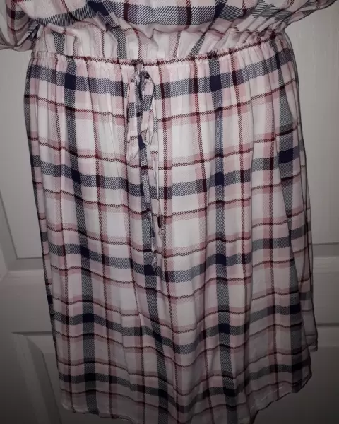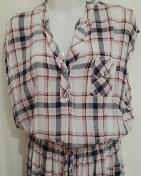 Vestido cuadriculado de tele fresca. Vestido de chifón de uso casual, en excelente estado.En cintura con resorte sin mangas.Calidad 9 de 10