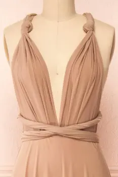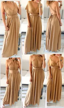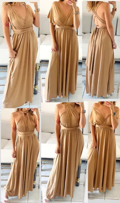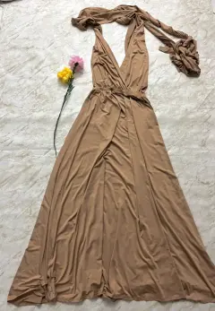 vestido cuello convertible. color camel, maxi, M pero queda unitalla sin problema