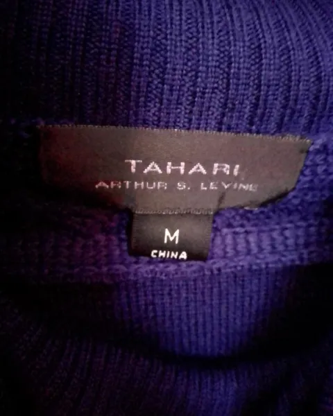 Es un vestido con cuello de tortuga color azul muy calientito .