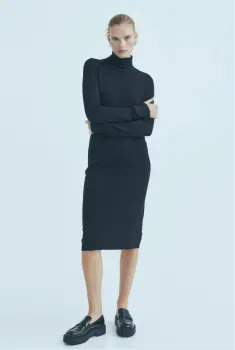Vestido negro cuello de tortuga elegante largo hasta el tobillo, completamente nuevo