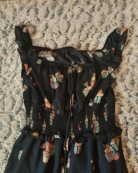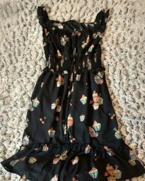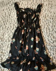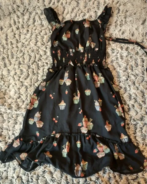 Hermoso y tierno vestido con estampado de cupcakes, su diseño es muy romántico y la tela es muy fresca.
