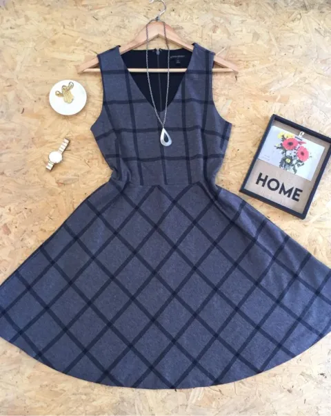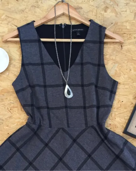 Vestido de Banana Republic. Vestido sin mangas corte circular, con estampado en cuadros de color gris Oxford, de tela de algodón súper suave y fresco.