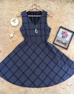 Vestido sin mangas corte circular, con estampado en cuadros de color gris Oxford, de tela de algodón súper suave y fresco.