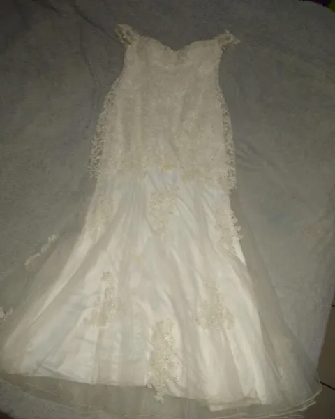 Vestido de boda al civil o para Boda de aniversario talla M excelente estado solo se uso el día del evento no roto no tiene cola es corte sirena cómodo y se ajusta perfectamente al cuerpo 👌🍀