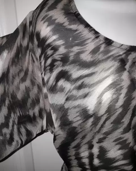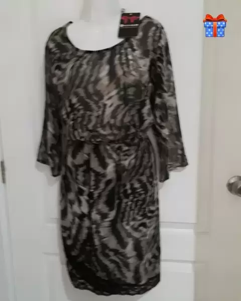Vestido de chifón, nuevo.Tiene un forro al nivel de la falda, terminación de encaje como se muestra en la imagen.Manga tres cuartos y resorte en la cintura.Fiel a su talla.Tela no estira.
