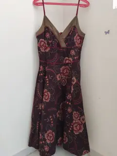 Vestido de cocktail muy original ❣️. Lindo vestido de cocktail, color café con bordado de punto de cruz, tirantes. Talla chica, lavable en casa.
