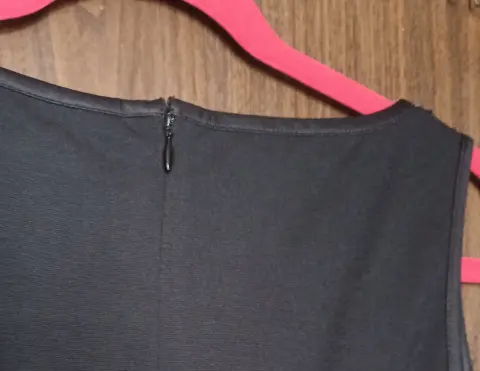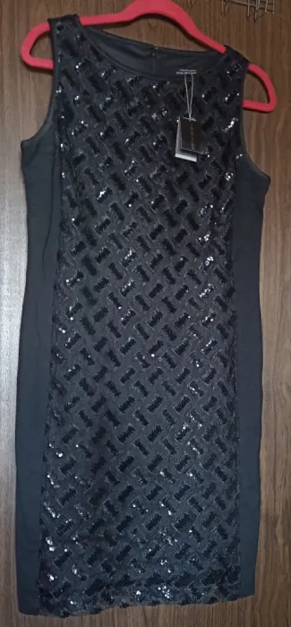 Vestido corto negro sin mangasTalla 32Bordado de lentejuela al frente, con forro completo, cierre invisible y pequeña abertura en la falda por la parte de atras