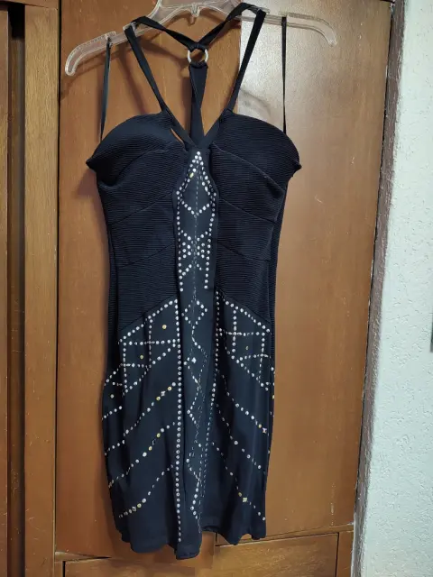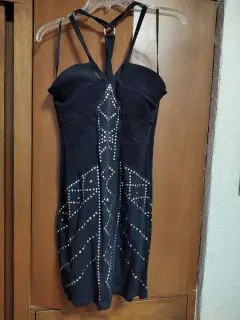 Vestido de cockteil. Marca bebé. Talla MNegro con aplicaciones en color plateado.