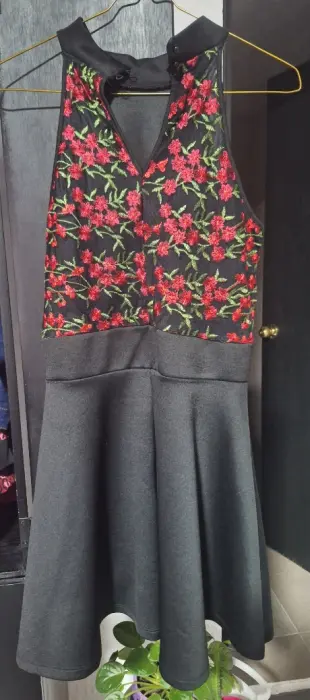 Vestido de coctel 😝. Es mediano, amarre en el cuello, floresMedidas aproximadas en plano:Largo: 85cmBusto: 38cmCintura: 37cm