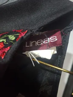 Es mediano, amarre en el cuello, floresMedidas aproximadas en plano:Largo: 85cmBusto: 38cmCintura: 37cm