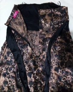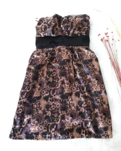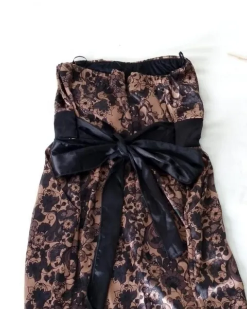 Vestido corto coctel. La tela es lisa, brillosa. El vestido tiene bolsas interiores a los lados que no e notan ni se marcan. Una cinta negra que ajusta a la cintura y se amarra atrás.Perfecto para usar con tacones.