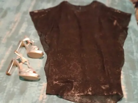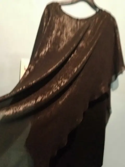 Hermoso vestido color negro de tela strecht con hermosa capa x ambos lados. Es talla 6 y el largo a la rodilla.