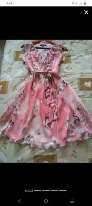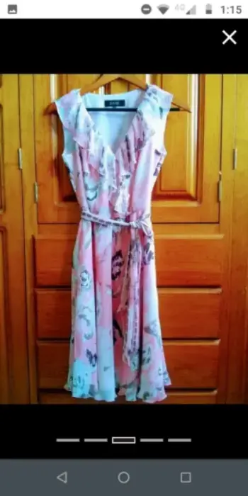 Lindo vestido midi, llega a la rodilla. Tiene escarolas en el escote que es cruzado hasta la cintura. Luce muy femenino, ideal para un evento de día en jardín o playa. Se usó poco, está en perfecto estado.
