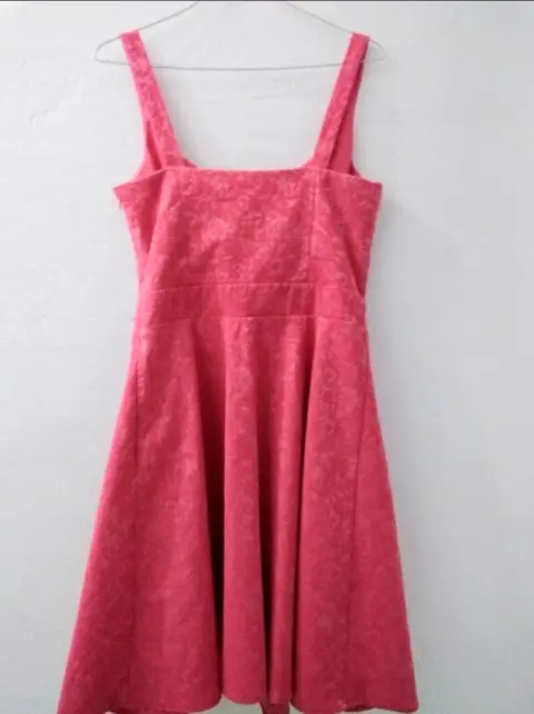Hermoso vestido de coctel en tono coral. Lucirás bellísima, la tela tiene textura de terciopelo con destellos. Talla 6 americano, es como S. Tiene cierre al costado y no tiene strech. Completamente Nuevo, sin etiqueta.De axila a axila 42 cm,Largo: 74 cm.