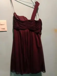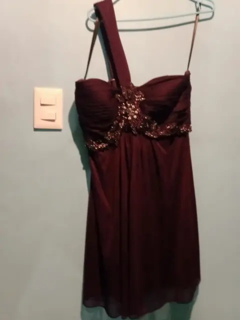 Vestido de coctel divino. Hermoso vestido corto de coctel color plum talla 10. Tiene un solo tirante y pedrería al frente.