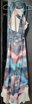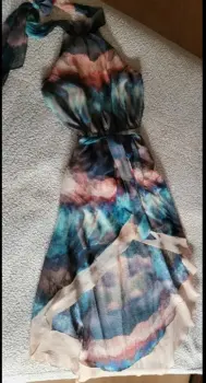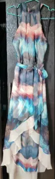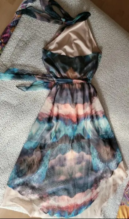 Vestido talla chica marca Bebe, espalda descubierta de corte asimétrico, multicolor, fresco y en perfectas condiciones, ideal para día o noche