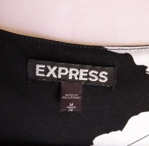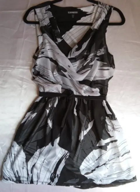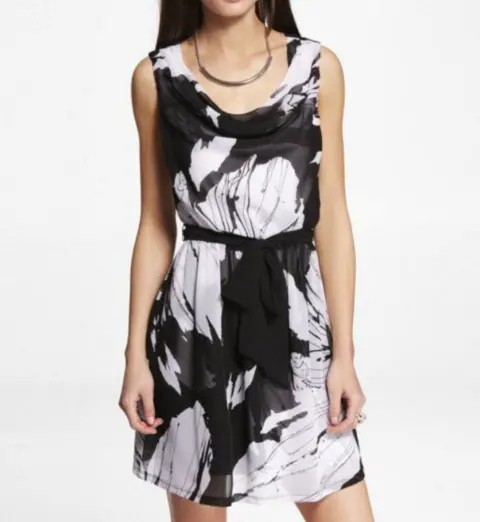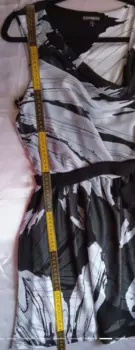 Vestido sin mangas en blanco y negro Express, diseño abstracto, escote drapeado, cintura elástica con cinturón para atar.100 % poliéster, capa interior: 96 % poliéster, 4 % elastanoTalla M