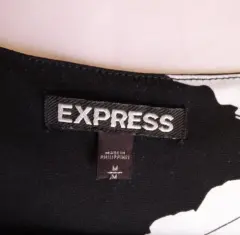 Vestido de coctel EXPRESS. Vestido sin mangas en blanco y negro Express, diseño abstracto, escote drapeado, cintura elástica con cinturón para atar.100 % poliéster, capa interior: 96 % poliéster, 4 % elastanoTalla M