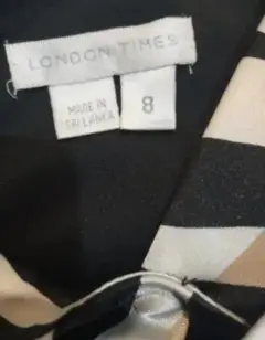 Vestido de coctel London Times. Vestido tipo cóctel de tirante grueso, estampado negro y beige, elegante, talla 8, marca London Times. Seminuevo.