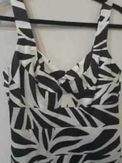 Vestido tipo cóctel de tirante grueso, estampado negro y beige, elegante, talla 8, marca London Times. Seminuevo.