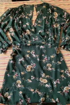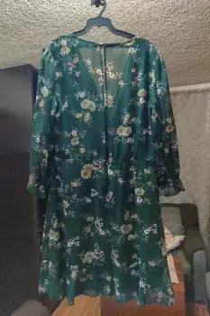 Vestido vrde floreado marca LOb talla 2 (M), está nuevo, sólo que ya no tiene etiqueta. es muy bonito, tiene forro en la parte de abajo y es abierto de la parte de atras