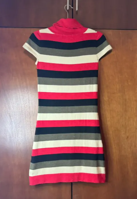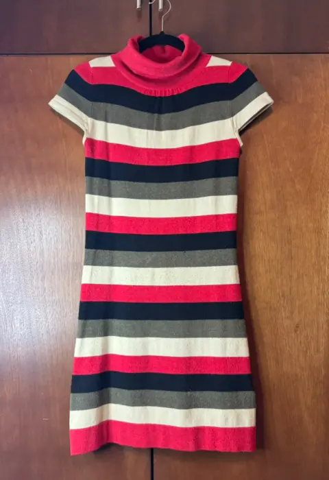 Vestido multicolores, corto, manga corta, cuello de tortuga, de algodón, Talla:34.