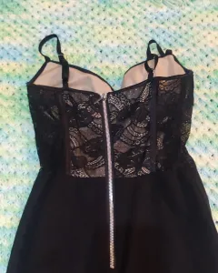 Vestido de corsel beige con negro, ajustado. Con tirantes ajustables. Muy bonito.