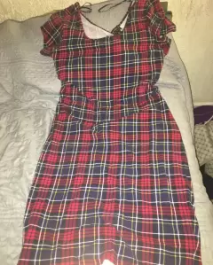 Vestido de cuadros. Es un vestido a cuadros pegado al cuerpo, con espalda semi-descubierta, hasta las rodillas, lindo para una salida con amigas o aún fiesta casual