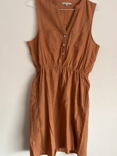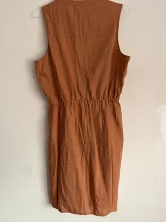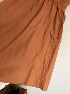 Vestido de dama. Vestido color ladrillo, manga corta, con bolsas, talla grande y largo a la rodilla