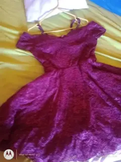Vestido de encaje Sólo se uso una vez.Es color vinoTela suave: 8% eslastano y 92% naylonTrae forro (para q esponje)Vestido corto arriba de las rodillasTrae tirantesVestido juvenil tipo princesaMarca Just BlackQuedaría perfecto con un cinturon para q luzca cintura. ☺️La tela es suave y no estira mucho.Es un vestido de excelente calidad 💎💯 garantizada. Talla grande