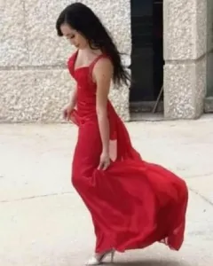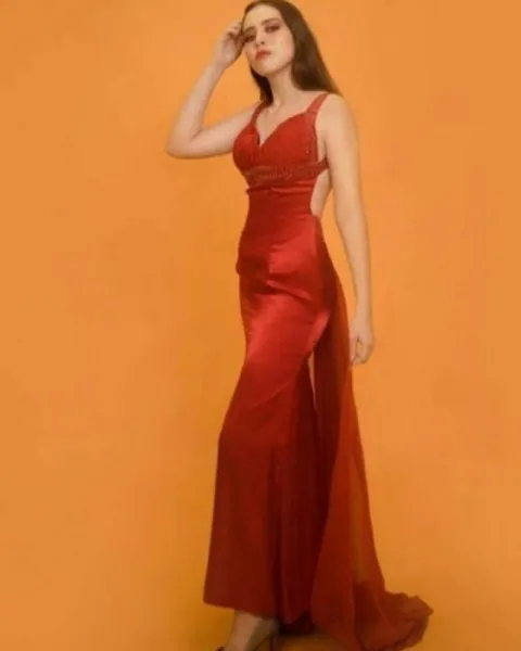 Vestido de diseñador Roberto Rios rojo satinado Talla xch