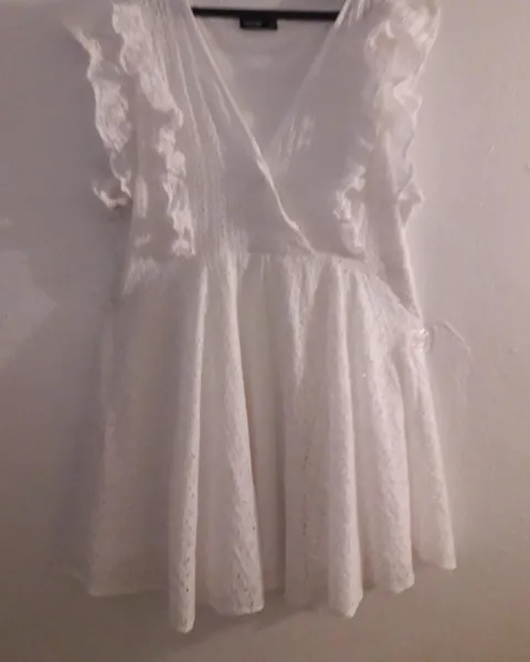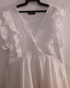 Vestido encaje marca SHEINEn excelentes condiciones solo se uso una vez y se guardo Llega hasta abajo de la rodilla Es fresco , de manga resacada con olanes Perfecto para un bautizo o algun evento al medio dia !!!A muy buen precio 😀