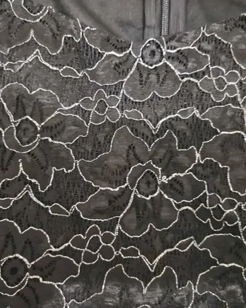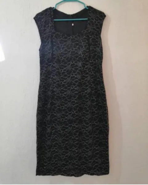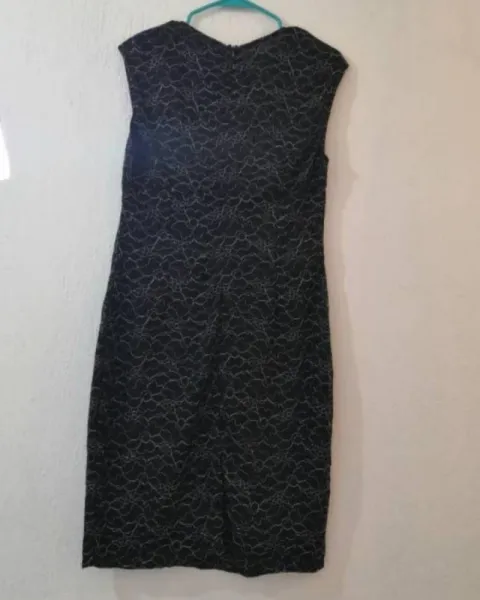 Vestido de encaje. Hermoso vestido corto con cierre ocuto en la parte de atrás, es de encaje y detalles en hilo platedo para darle un toque elegante. Totalmente NUEVO.