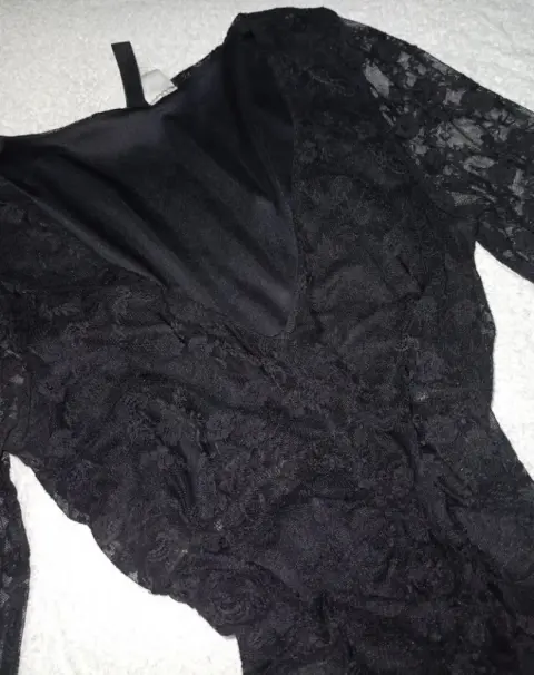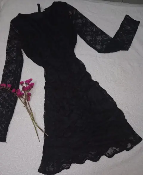Vestido de encaje. Es un bonito vestido negro con detalles de encaje que le dan un toque elegante a la prenda