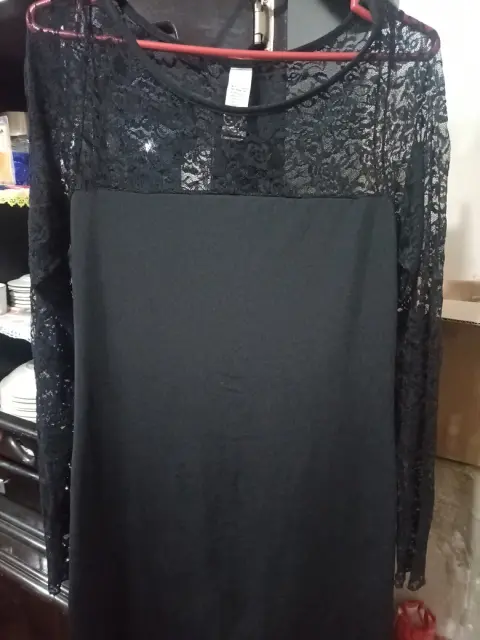 Tela suave, manga larga de encaje, color negroEntalla muy bonito, corto a la rodilla