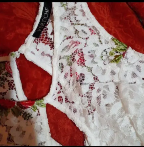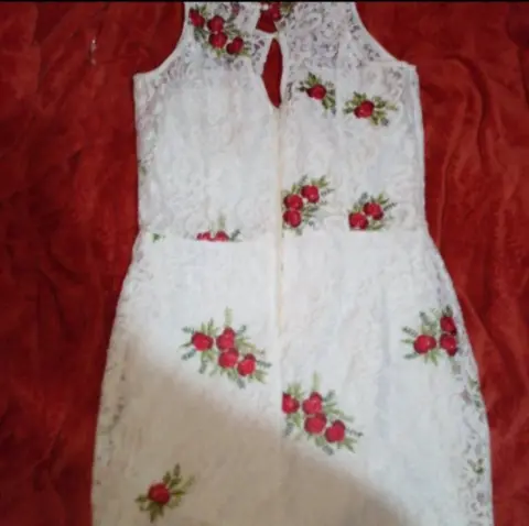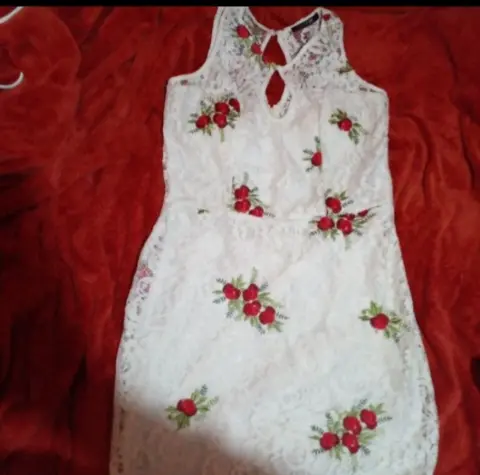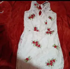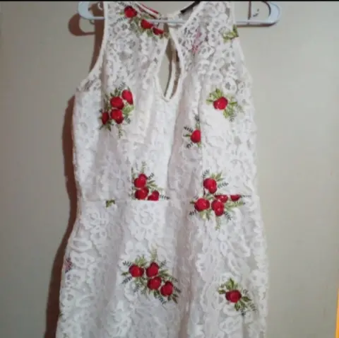 Vestido básico de encaje con decoración de flores bordadas de fondo blanco, en perfecto estado, no cuenta con ningún defecto talla (XL) a talla (L), ajustable en la parte de la cintura.