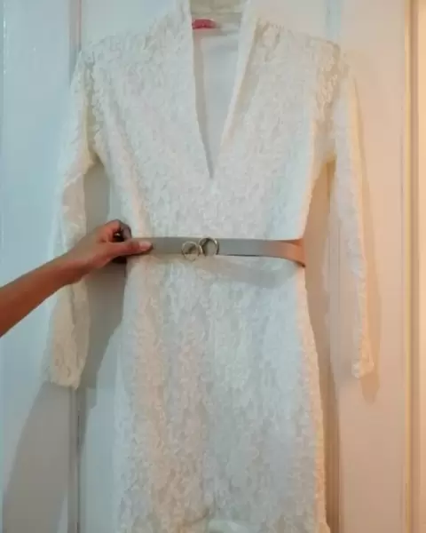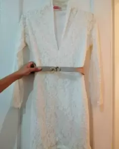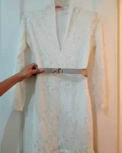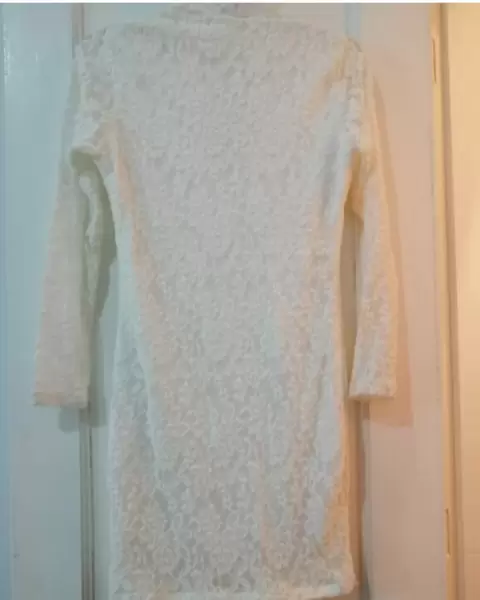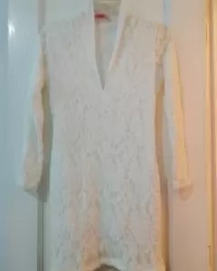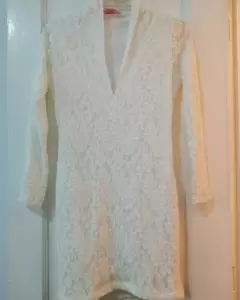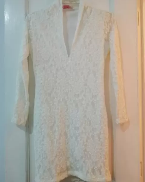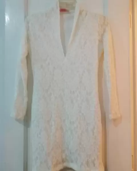 Hermoso vestido blanco de encaje, cuello en V, manga larga, entalla super bonito al cuerpo, no tiene defectos