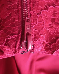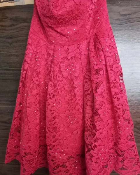 Vestido color fiusha de encaje con brillos, sin tirantes tipo strapless solo se uso una vez, con cierre en la espalda